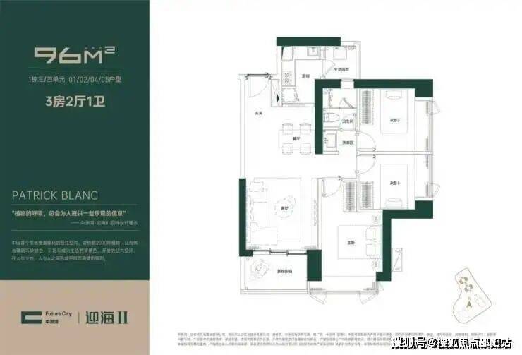约96㎡,3房2厅1卫, 372套