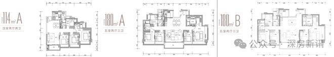 114㎡的四房两卫及180平的5房产品: