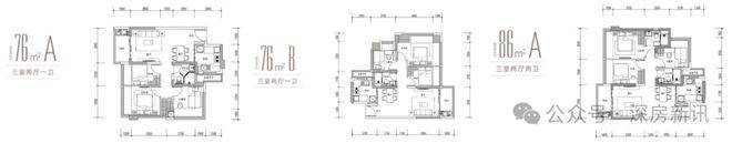 76㎡、88㎡的3房2厅