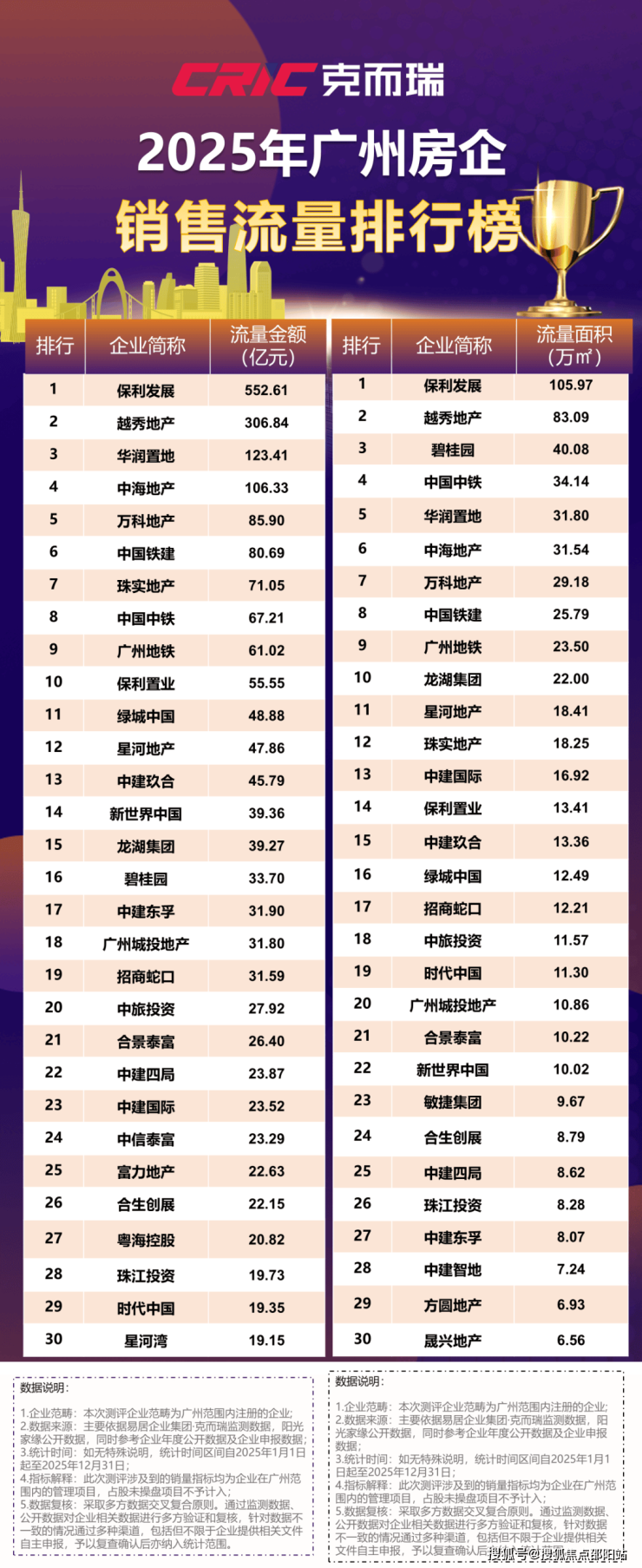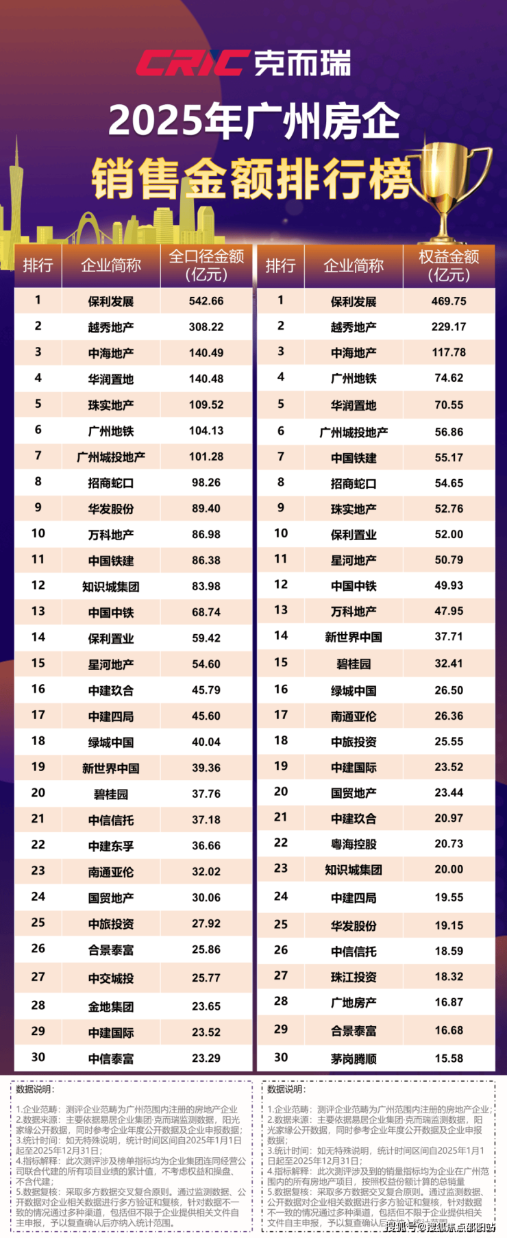 今日,克而瑞广佛区域重磅发布《2025年广州TOP30房企销售排行榜》,一起来看在行业新周期下,房企排名会发生什么样的变化?