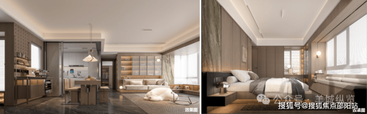 入户大堂、架空层也同样沿用千万级会所的配置,如入户大堂内的立面使用高级石材和碳晶木饰板,通过天地墙对缝精工打造全幕墙突出尊贵质感;其次电梯也是使用了酒店式同款电梯,电梯厅标配景墙以装饰木饰条纹和透光云石点缀,肉眼可见的材质、工艺和设计,都是豪宅同款级别的存在。