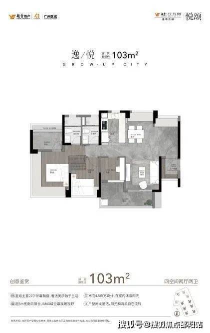 主卧360°无立柱转角阳台,搭配阳光梳妆台和衣帽间,每天躺床上都能尽情的沐浴阳光;约5m宽的南向景观阳台,可以说是IMAX级的巨幕观景视野;而且这个户型能够做到五开间朝南,户型南北通透,阳光和清风都能自在流转。