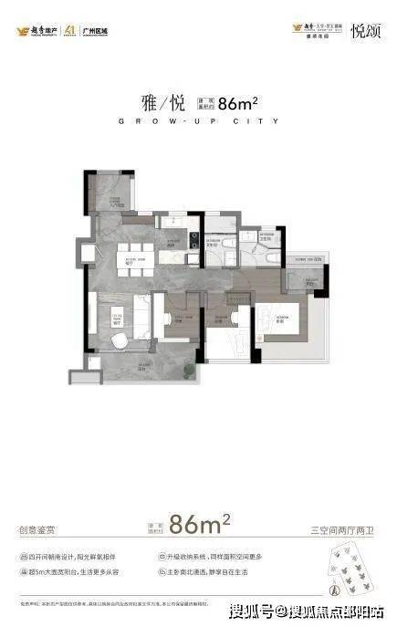 建面约86㎡的户型,在一期断货王的基础上做出了全面升级。