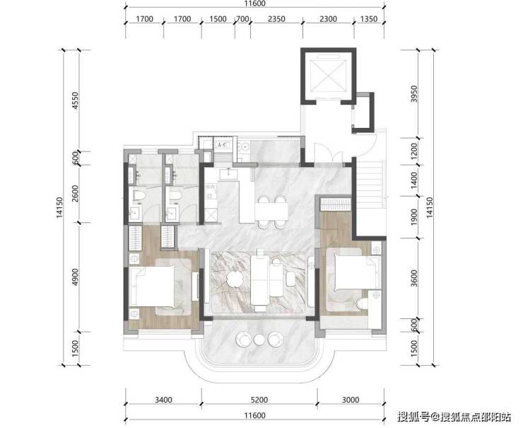建面积约105㎡户型,打破常规105平三房的户型格局
