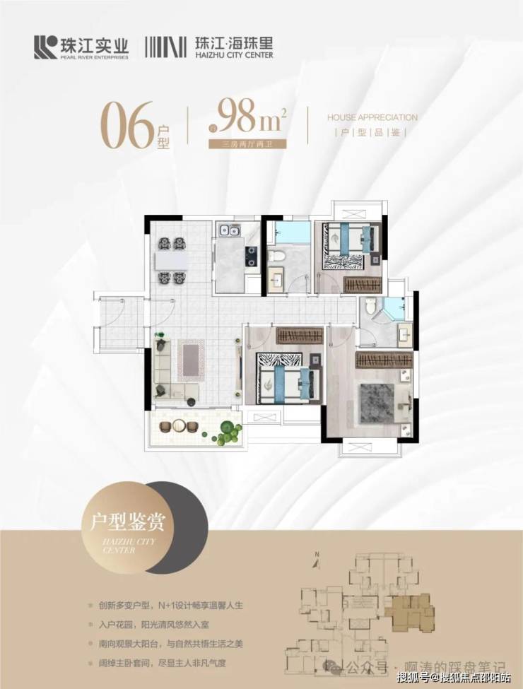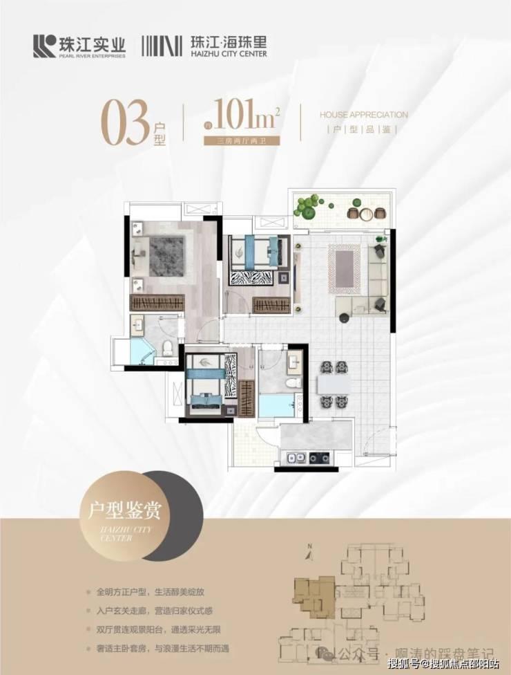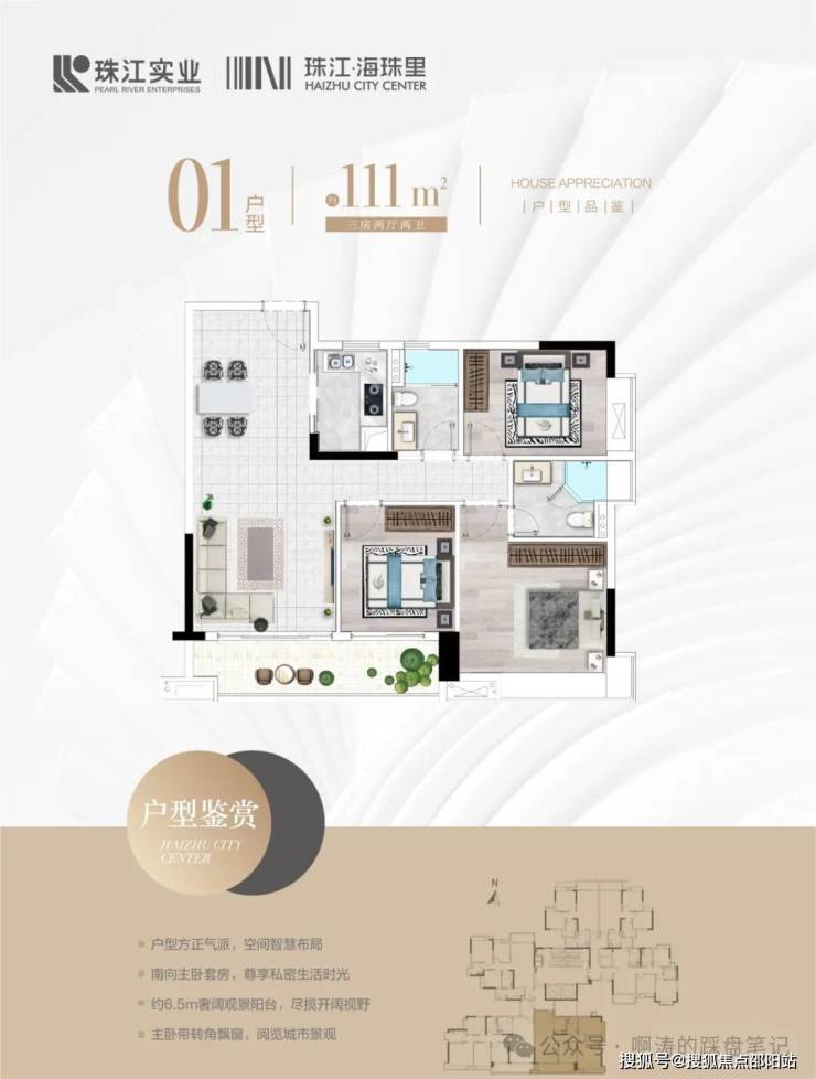 秉承初心,精工匠筑,打造建面约75-129㎡城芯臻品,户型全明方正,约85%超高实用率;采光通风俱佳,拥抱清风和阳光;承载海珠芯的人居理想,敬献城市精英人士。