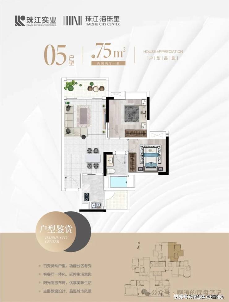 珠江·海珠里,深入思考当代人居需求,对空间户型进行全维度升级,打造建筑面积约75-129㎡二至四房,全明空间,格局通透,通风采光优越,多种生活场景营造,丰盈的空间感,给身心更有质感的居住体验。