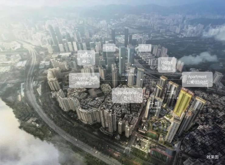 一二期建面约126万㎡全系业态滨海综合体,涵盖超甲级写字楼、高端酒店、精品公寓、海幕住宅、购物中心、公园式街区多种业态。目前一期住宅公寓已售罄入伙,写字楼已招商运营(入驻企业包括:平安产险、海通证券、浙商银行、VFS Global等国内外知名企业),城际酒店Intercity Hotel已开业,一期约8万㎡商业已开业,40%的品牌都是首次进入深圳或者华南地区,华南区首家茑屋书店、寰映IMAX未来概念店,华南区首家teamLab未来游乐园等。