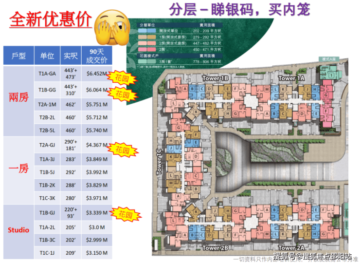 性价比高:开发商提供高成数贷款且无需入息证明,首 23 个月月供低,还有较高的即供折扣,部分特价房折价力度大。