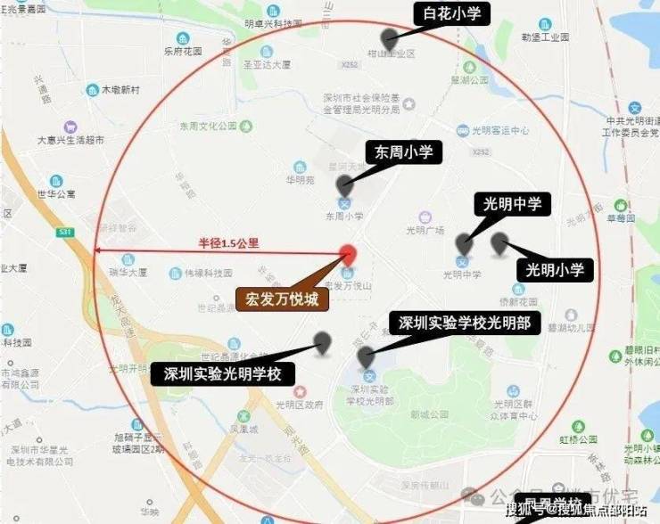 教育:项目半径1.5公里范围内分布有多所公里学校,如:东周小学、光明中学、光明小学、深圳实验学校光明部、深圳实验光明学校、凤凰学校等。另外范围内的万科光年四季小区正在建设一所小学。