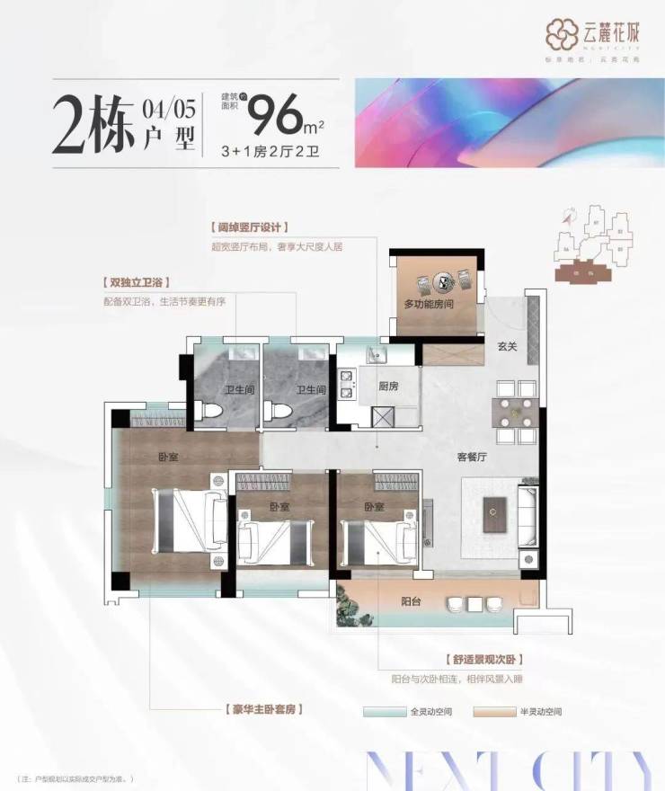 云麓花城首推建面约68-98㎡三至四房实用户型,实用面积多房设计,容纳更多生活所需,相伴人生的每一阶段。