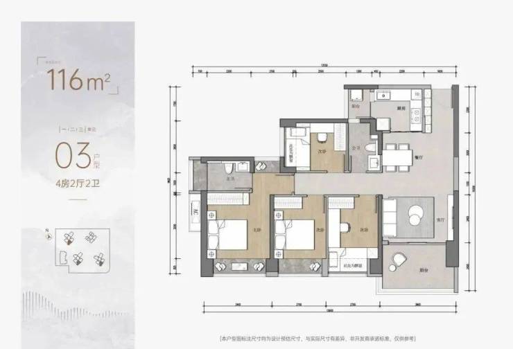 建面约116㎡的全南向户型,更实现从三开间朝南到四开间朝南的飞跃,既能满足四口之家又能容纳三代同堂,育娃、养老都毫无压力。
