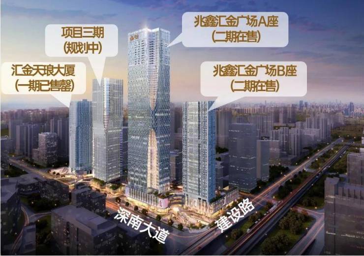 兆鑫汇金广场项目占据深南大道400m沿街封面,262m地标高度兆鑫汇金广场售楼处电话:400-150-5057,是金三角城市更新首发之作,涵盖了商业办公、商务公寓、总裁公寓等业态的约28万㎡综合体