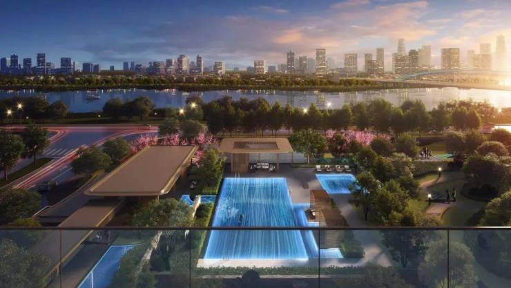 为保证私密尊崇感,将地块抬高约3米,搭配纯板楼设计,实现全南向一线望江。