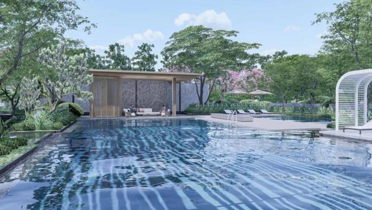 融合新岭南元素和莫奈花园理念,打造“山重、水秀、林茂”的山水林庭布局,层层叠叠如梦如幻,从自然光色变换中捕捉美好瞬间。