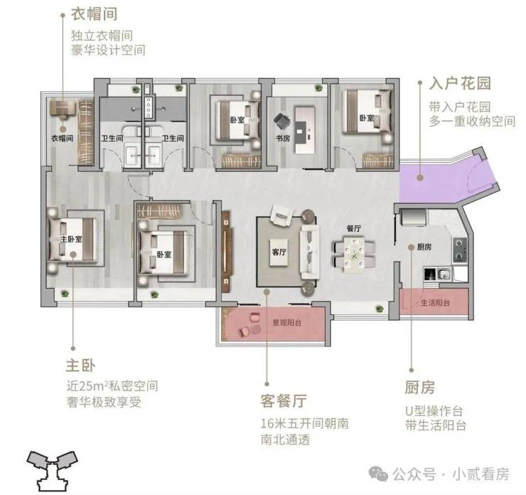 【140㎡5房2厅2卫】南北对流,约32m²阔绰客餐厅,约16米南向五开间,享央景园林约25m²豪华主卧,带独立衣帽间