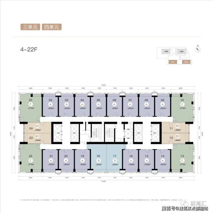 总 楼 层 :1/2单元43层,3/4单元48层