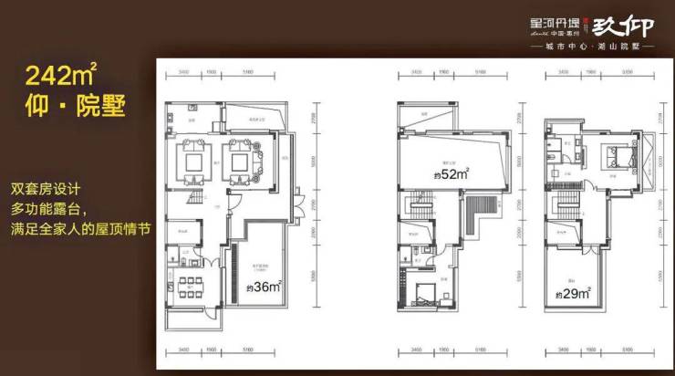 242双拼合院:位置在湖心岛,产品稀缺共28套,下沉式庭院隐私性好,使用面积780平,买三层享五层,五层全采光设计
