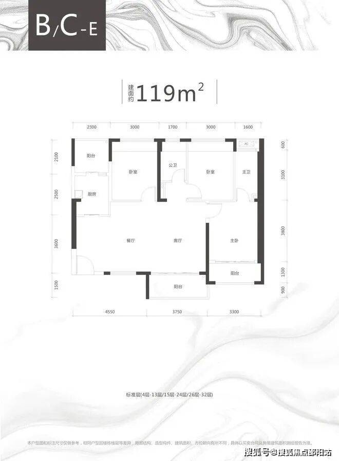 C栋B/C/E户型、约118-119㎡三房两厅两卫