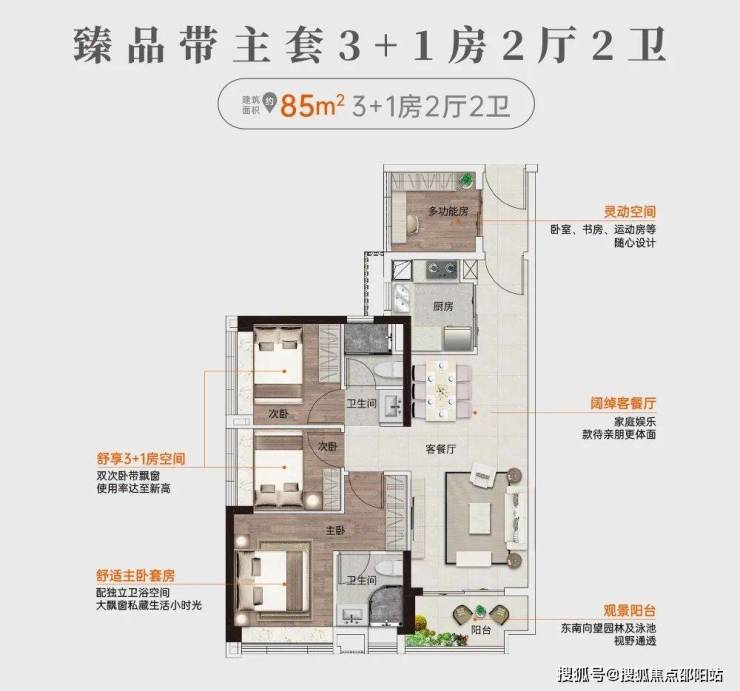 四房一直都是市场的主流户型,但是能做到约85㎡带主套的四房产品,在整个市场上也是十分稀缺的。花更低的价格,享受多种生活方式,户型优越性不言而喻。