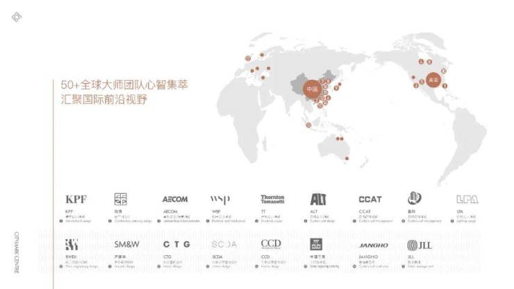 城脉中心集萃了全球大师与团队的视野与智慧,联袂50多家全球顶尖机构倾力打造。建筑、景观、结构、机电、幕墙、灯光、风工程、声学、室内设计、物业管理等均聘请全球或国内知名公司、超高层建筑与管理专家。