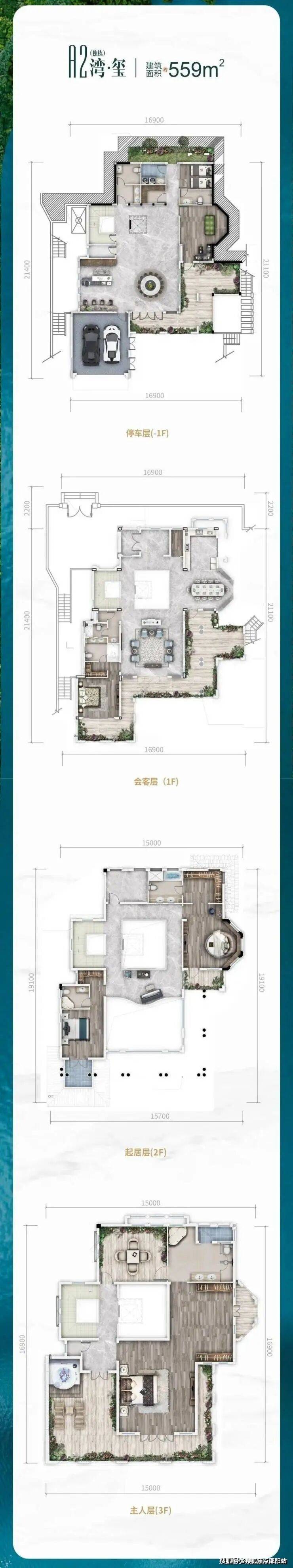 别墅户型:313-365㎡联排/双拼(415-560㎡独栋别墅)