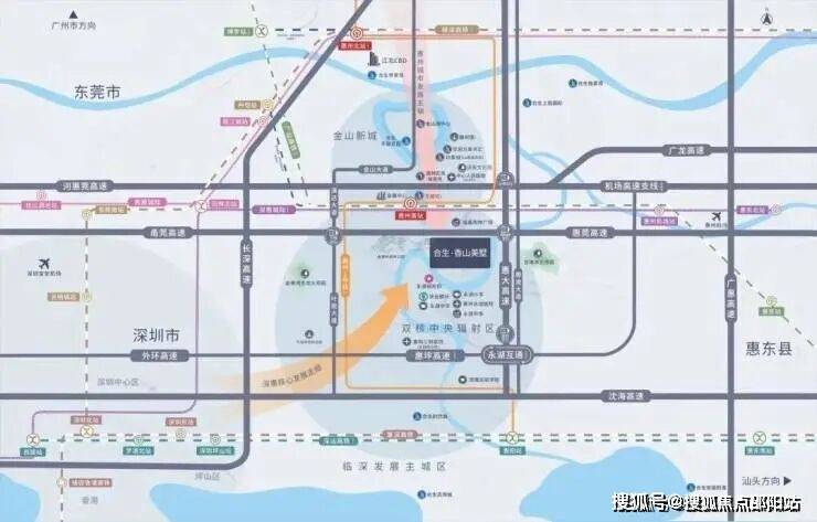 三轨道:即广汕高铁、深惠城轨、惠州地铁1号线,都汇集于惠城南站(已更名为惠州南站),离我们项目约8公里,10分钟车程。