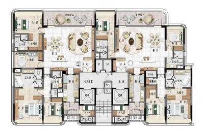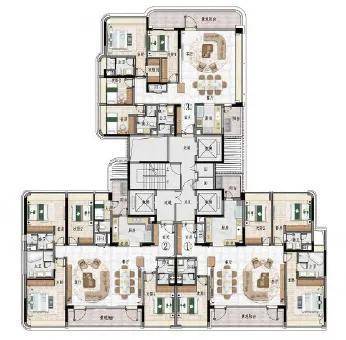 建面约239㎡的户型拥有一个宽度为8米的阳台,而建面约242㎡的户型则拥有一个宽度为8.4米的阳台。这两个户型的实用率为83.6%。实用率是指住宅单位中实际可使用的面积与总建筑面积之比。在这种情况下,实用率为83.6%,意味着户型中有83.6%的面积是可以实际使用的。1号楼户型图2号楼户型图3号楼户型图项目由14栋12层小高层组成,产品涵盖123-352㎡三至五房,共8类户型,户型实用率约82-84%