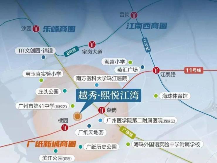 商业方面,星汇海珠湾沿街的底商和片区内的广纸天地荟倒是熙悦江湾的现成配套,1.5公里外的乐峰广场也能成为日常的逛街去处。