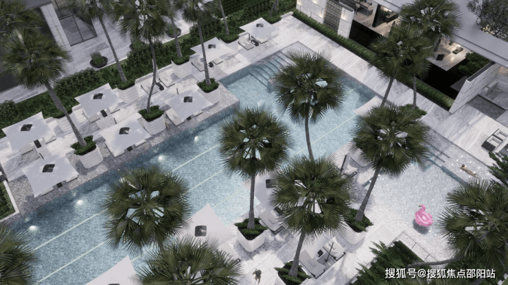 把浓厚的迈阿密酒店式隐奢滨海度假风融入生活日常,如此妙至毫巅的手笔来自新加坡JTL景观设计大师。