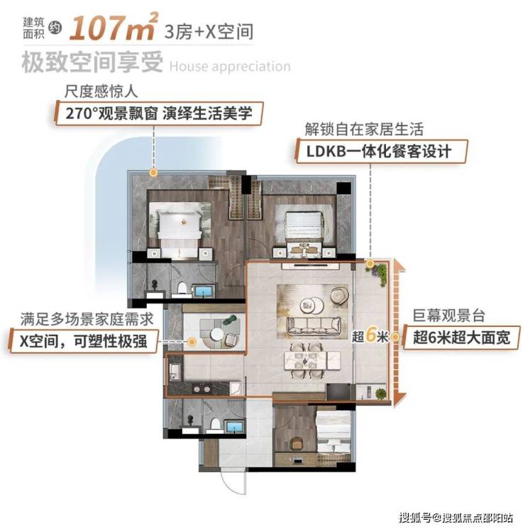 107㎡3+1房,满足家庭不同阶段的多种需求