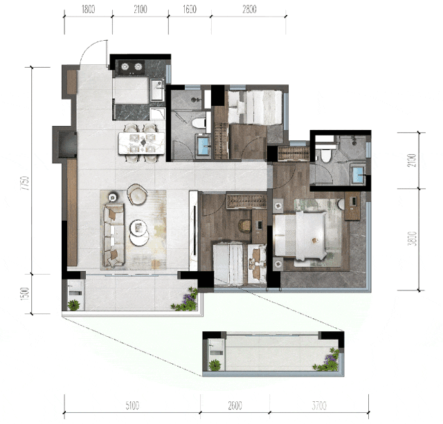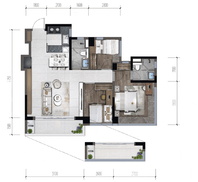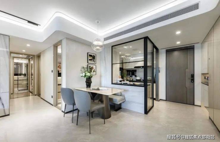 LDK方厅里,特意设计的X空间,可以融合到厅里,也可以单独形成一个独立的区域,可以是客房、书房,也可以是茶室、画室。可开可合厨房+岛台,交互性更强,而且连接独立家政间,使用十分便捷。酒店式套房主卧,“类折叠屏”飘窗可270°瞰景,自带男女衣帽间和梳妆台,超大卫浴间四件套,同时做到了双面采光。