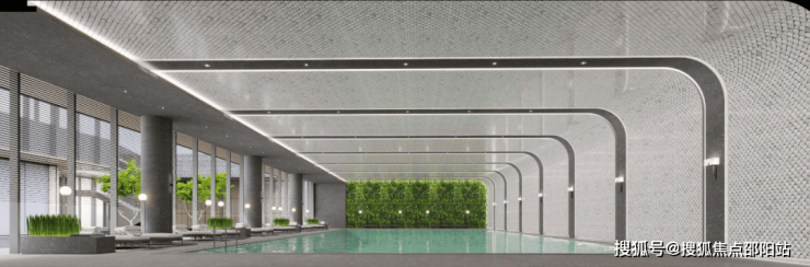 社区还规划了全区的风雨连廊、约6米高的全龄架空层泛会所、室内外双泳池联动,既能休闲放松,也能游泳健身。