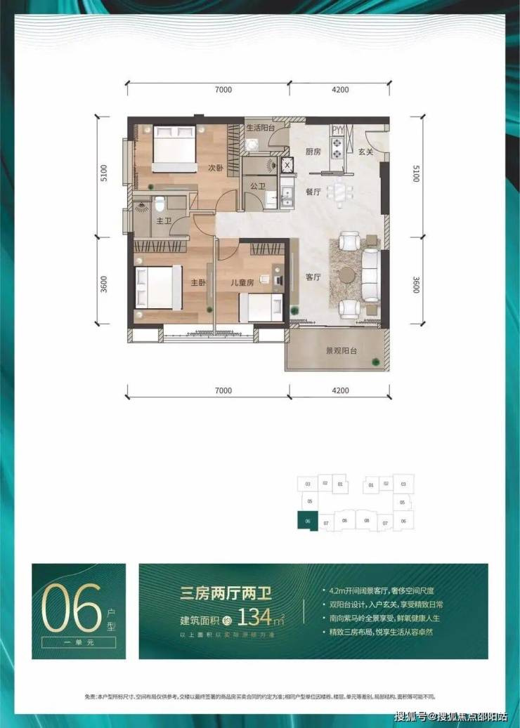 双阳台设计,超宽 6.8m 观景阳台,静观紫马岭四季美景。