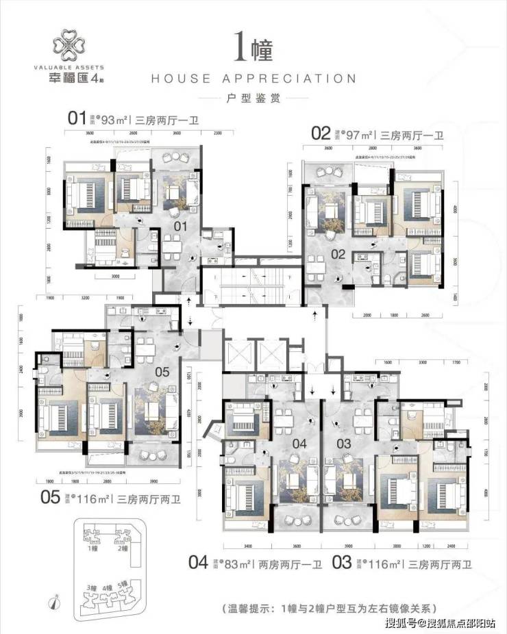 户型方面,涵盖83-116㎡两房至三房,灵动空间,南北对流,楼距开阔,采光充足,社区自然通风效果一流。