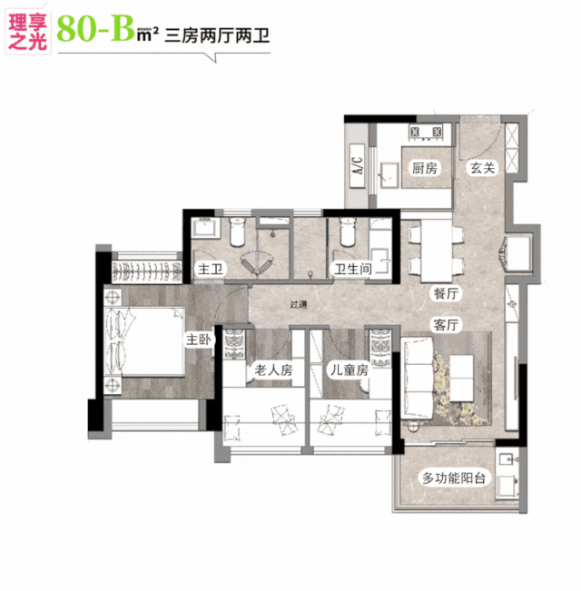 当然,如果你对居住的要求更高,那么建面约80㎡的三房户型可能会更加适合你。