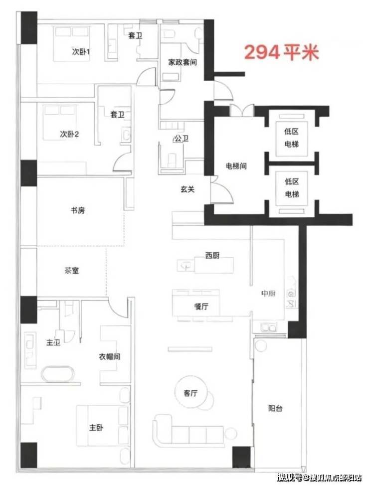 空间配置:四房以上格局,双套房设计,配备保姆房及独立家政动线