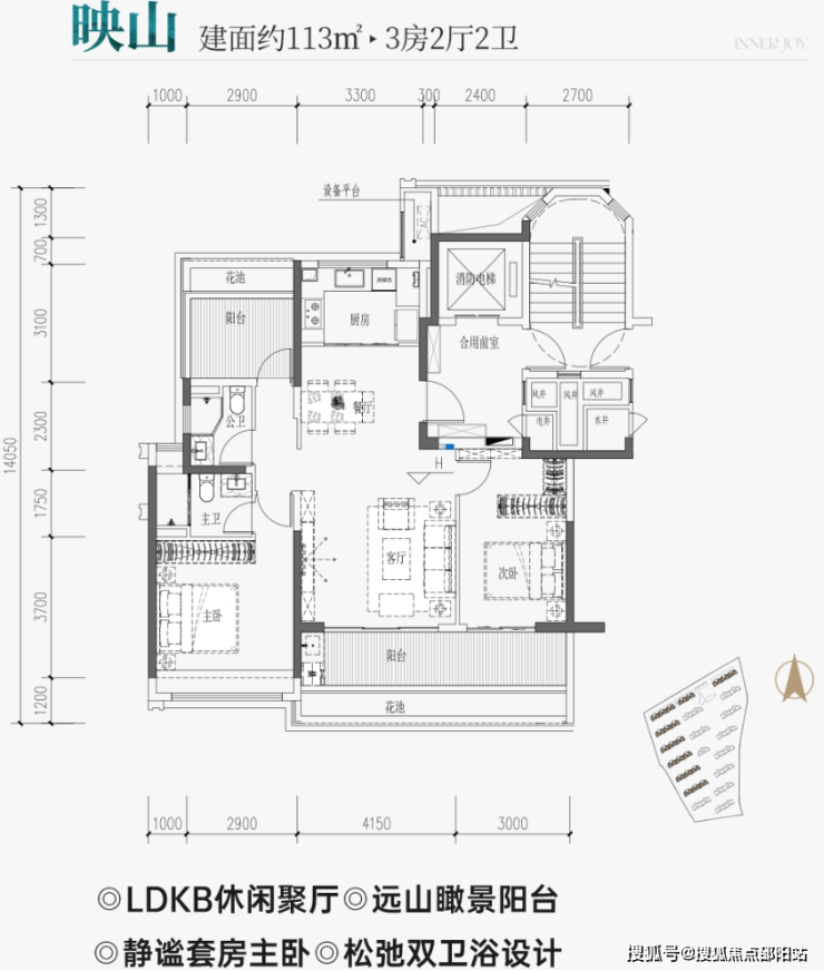 113-143㎡三房至四房、板楼设计、独立入户电梯间、超高得房率