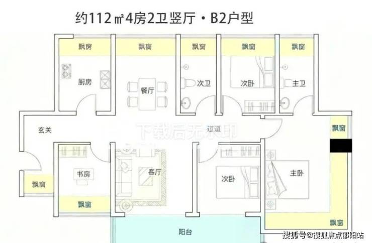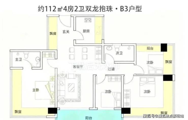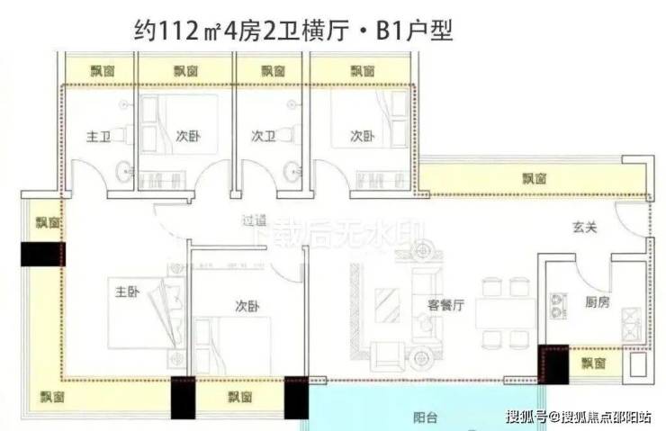 户型面积为105-188㎡纯四房,2梯4户,西南向无遮挡看海,西北向看高尔夫+碧海湾公园。