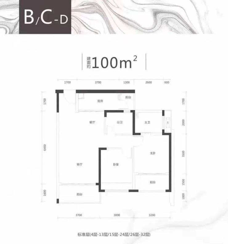 C栋B/C/D/E户型、约100㎡两房两厅两卫),118-119㎡三房两厅两卫
