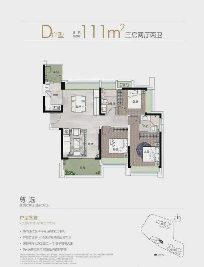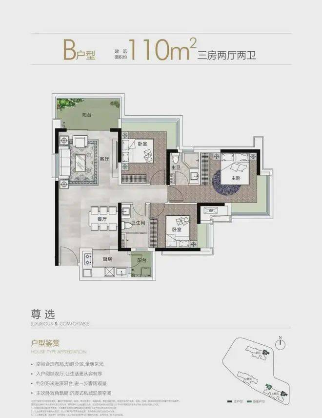 3. 110㎡户型,201套,三房设计,适合三口之家或三代同堂,宽敞的客厅和舒适的卧室,为家人提供温馨的居住空间。