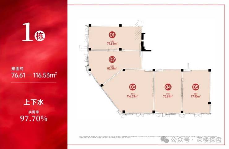 商铺使用率约96.8-97.7%、层高约5.4米,开间与进深比经过科学优化考量,格局方正、空间利用率高。