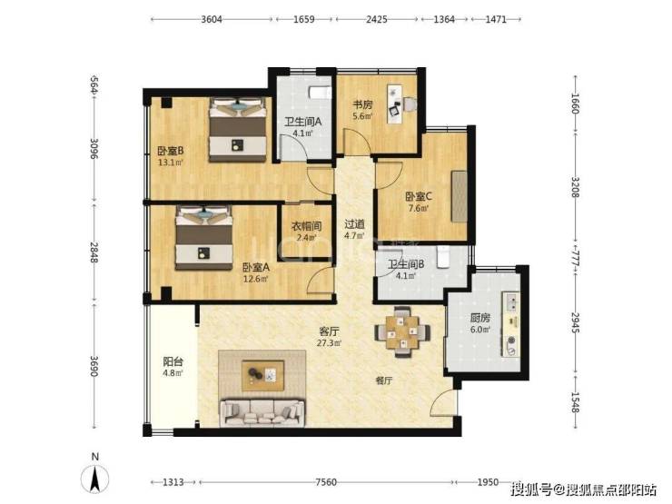 ◆户型:4房2厅2卫