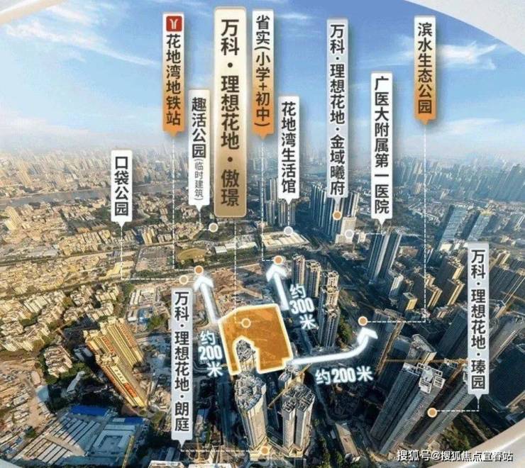 万科·理想花地·傲璟位于广州市荔湾区花地湾板块,紧邻地铁1号线花地湾站(约400米),总建筑面积约16万平方米,共规划有4栋住宅(844户),主打74-186平方米全南向户型,涵盖从刚需到改善的多样化需求。作为“未来城市3.0”的实践作品,该项目以新加坡酒店设计理念为蓝本,打造高奢立面与立体植物园社区,定位为广州中心四区标杆住宅。
