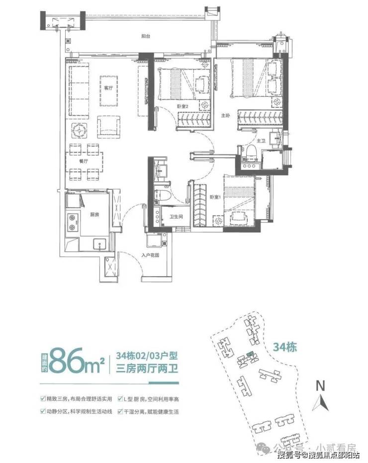 此次广地花园·观灏加推的新品34栋悦景楼座,面积段分别为86m²、96m²、100m²悦景三房,多面采景,三面望水,通透采光,充分利用户型的每一寸肌理,以有限的生活空间焕发更多生活灵感,打造全方位人性化居所。