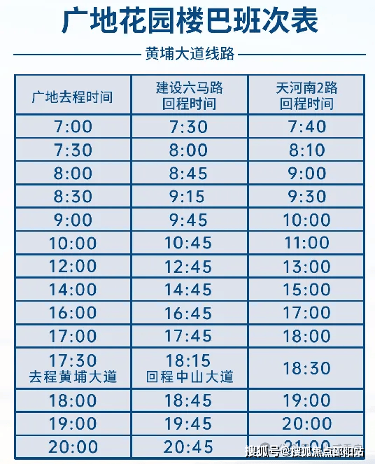 下面是楼巴运营时间表,还挺密集的: