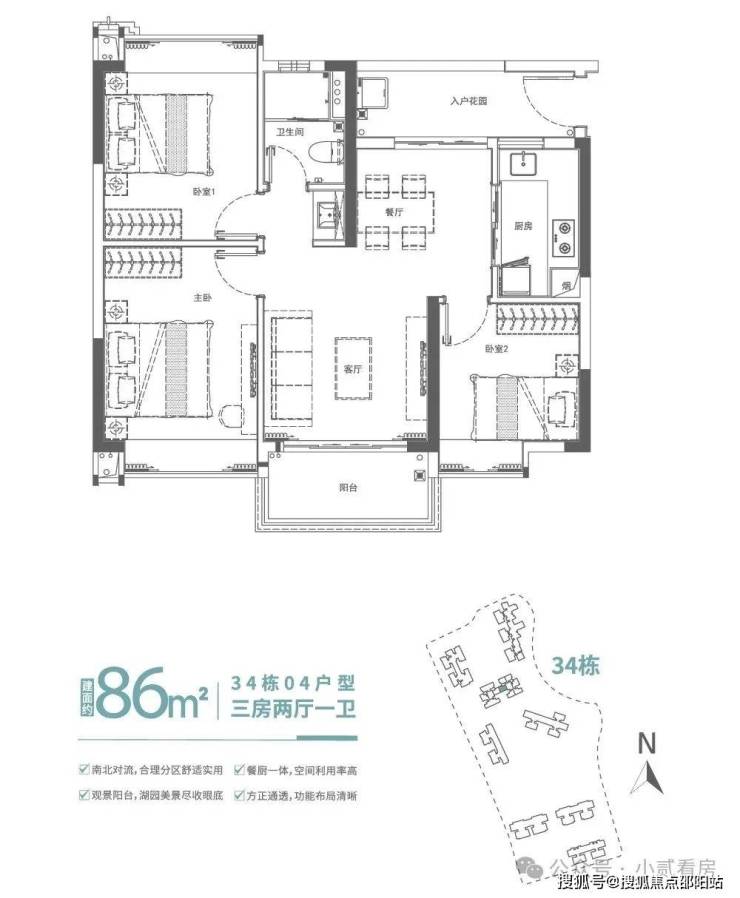 建面约86㎡南北通透三房,南北对流,采光通透,空间视野开阔,布局方正舒适实用,客厅直通南向阳台,引更多清风和阳光入室,缔造质感生活。