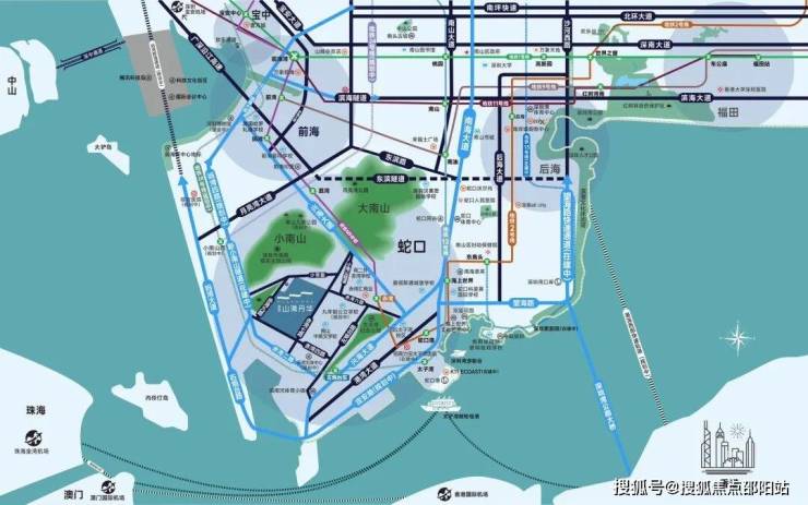 兴海大道、南海大道、望海路、妈湾跨海隧道(建设中)等多条干道环绕,从容往来全城。