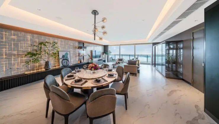 当中尤其主卧视野最具代表性,它以游艇为设计灵感,改变视野打开方式,瞰景画幅扩大至270°,窗外的风景犹如一幅巨幕画作。