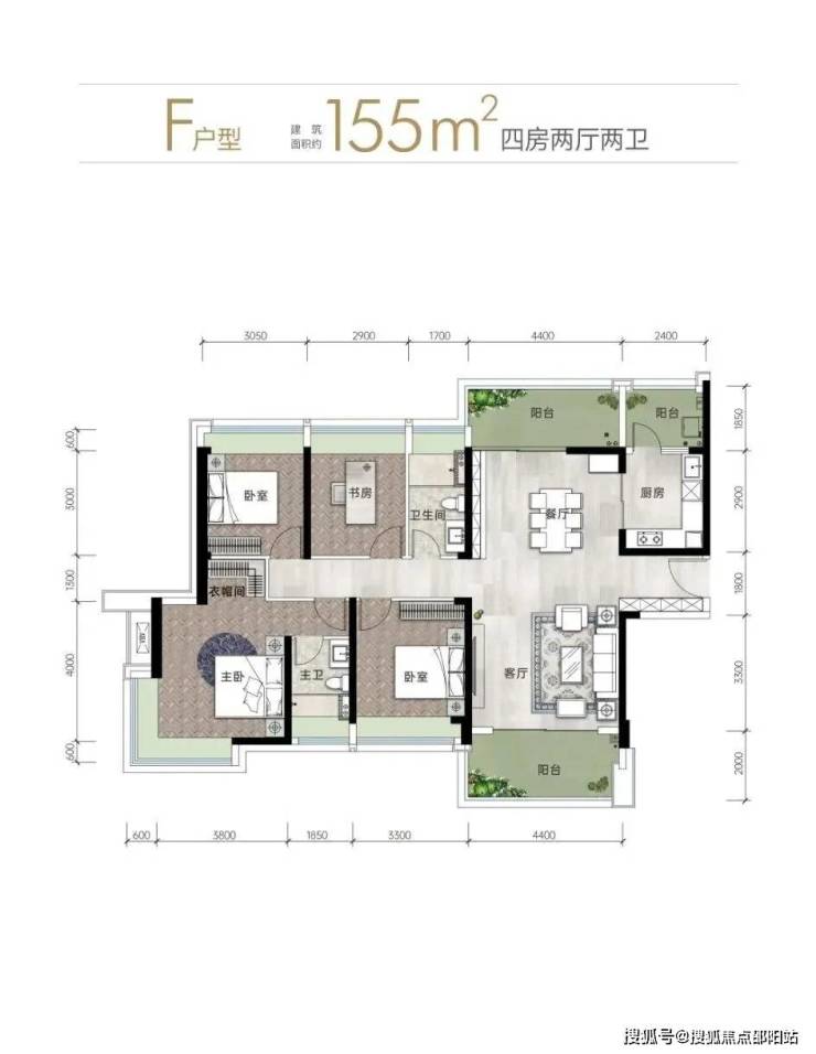 - 布局:竖厅双阳台,四开间朝南,主卧套间+独立衣帽间,中西双厨设计。