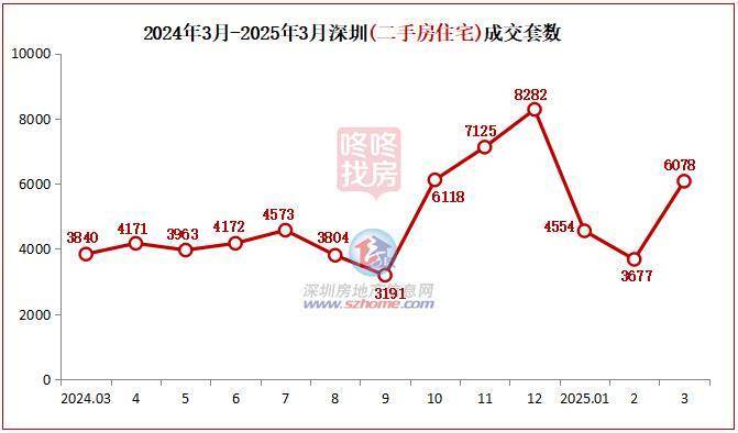 统计数据显示:2025年3月深圳成交6078套二手房住宅,环比增加65.3%;成交面积597028平方米,环比增加61.9%。